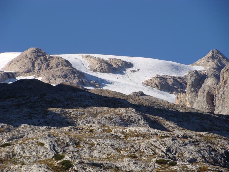 ... liegt auf der Nordseite der Marmolata. Hier fällt die Flanke vergleichsweise sanft ab.