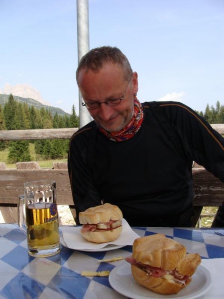 Ein Panino mit Speck und Käse. Das leckerste und am dicksten belegte seiner Art, das wir bei all unseren tagtäglichen Kostproben gegessen haben!