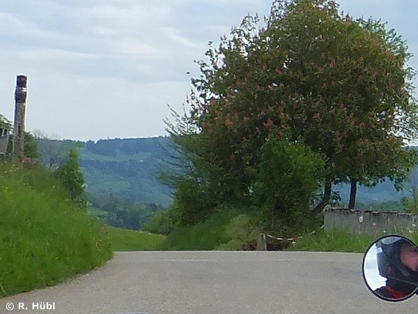 Am Samstag, 19.05., nach dem Reiseforum-Treffen in der Eifel, ging es los. Nach dem zeitigen gemeinsamen Frühstück mit den Forumsmitgliedern ryna, André und seinem Vater im Hotel in Mendig, sattelten wir die Hühner, respektive Motorräder und zogen gen Süden, zunächst einmal in Richtung Mosel. Dann sollte es durch Hunsrück und Pfalz via Johanniskreuz in Richtung französische Grenze gehen. Als Etappenziel am Abend wurde das Schweizer Jura anvisiert.