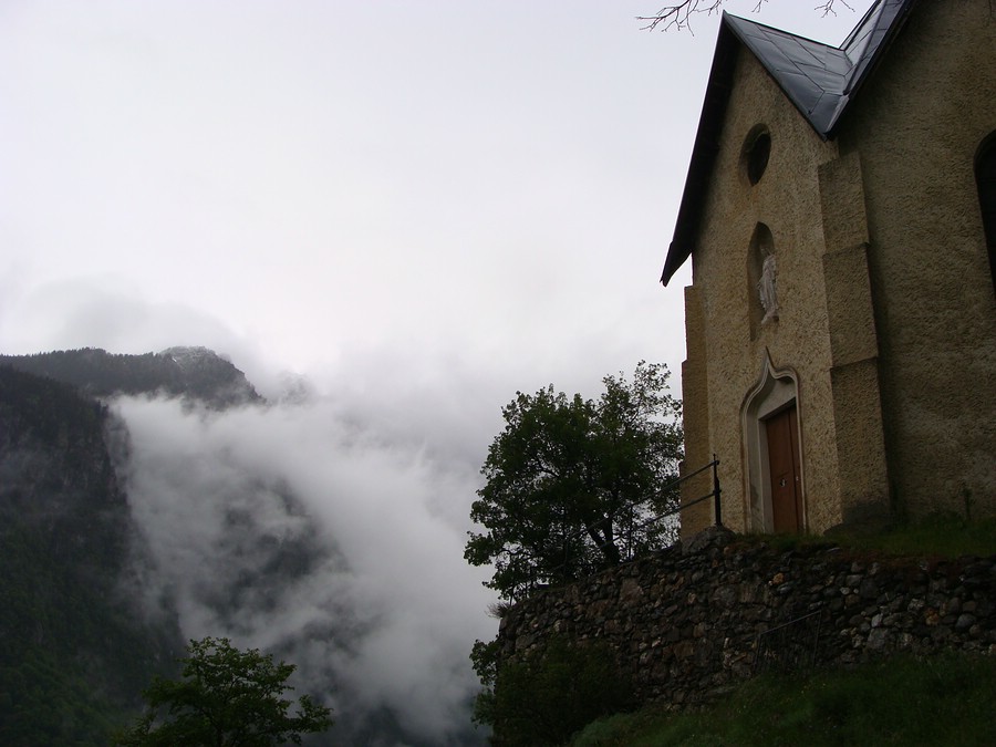 Trübe Aussichten an der Chapelle de la Balme, Montvernier- Serpentinenstrecke. |