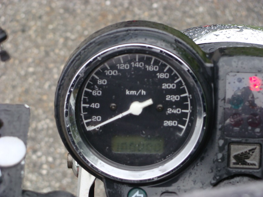 Plötzlich 6 Ziffern - ein gewöhnungsbedürftiger Anblick. Und leider kein dem Ereignis würdiges Wetter. |