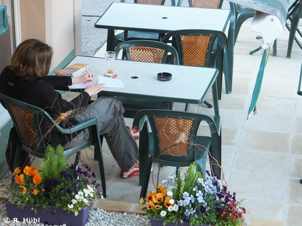 Knapp, aber so was von knapp vor ihm kam sie zum Stehen. Mein Herz war in die Hose gerutscht, das war zu viel für diesen Tag. Himmel, wir haben diese Reise zu dritt gestartet, lass sie uns auch zu dritt beenden! Eine kleine Verschnaufpause für alle, ich gönnte mir nach der Dusche als Apéritif einen Panaché in der Abendsonne (die leider viel zu schnell weg war) und hielt die Notizen des Tages fest. Das zum Hotel gehörende Restaurant rundete mit seiner Karte - ich sag nur: Menu Terroir! - den Tag ab. Lecker war´s! Michael verzog sich irgendwann, während Rainer bei einem Pichet Roten noch ziemliches Sitzfleisch zeigte. Das hatte ich nach der Tagesetappe nicht mehr so wirklich. Irgendwann war Endegelände und *zzZZzz*. An den kommenden Tag und die - zwangsweise - zu absolvierenden Kilometer wollte ich in diesem Moment nicht wirklich denken. |