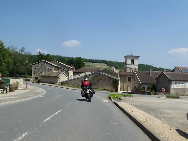 Dann wechselte die Landschaft und wir befanden uns plötzlich inmitten von Weinbergen wieder. Mh, das roch man auch gleich - zumindest ich als gebürtiges Moselkind erkannte diesen Duft von Rebstöcken sofort (es ist schon schade, welche Gerüche den Autofahrern entgehen). Hoppla, plötzlich war "Chardonnay" ausgeschildert! Ich wusste bis dato gar nicht, dass dies auch ein Ort ist. Mir war nur die Rebsorte bekannt. Und so war ein Mini-Fotostopp natürlich Pflicht. Da ich die Lenkerkamera montiert hatte, musste ich auch nicht lange im Tankrucksack wühlen. Jawohl, meine Aufnahmezeiten hatten sich zwischenzeitlich denen von Michael und Rainer angepasst. Nach dem idyllischen Weinanbaugebiet folgt leider eine ziemlich öde Etappe - von Tournus nach Louhans zog sich die Nationale zäh wie Kaugummi und fast schnurgeradeaus. Sicher, wir wollten Kilometer machen, aber "schön" war definitiv anders.
