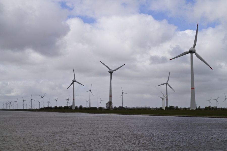 In Reih und Glied. Windkraftanlage in der Emsmündung. |