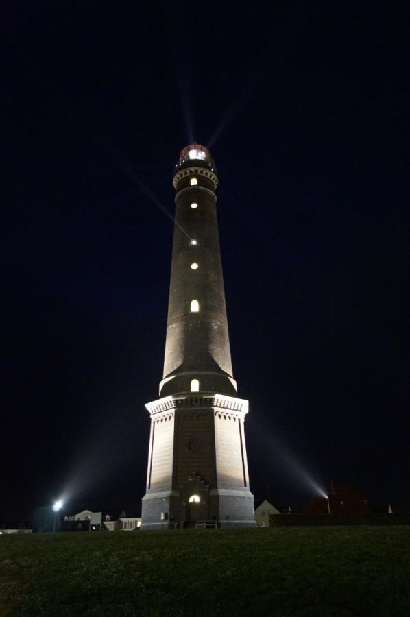Lichtquelle. Der Neue Leuchtturm Borkum (nautisch: Grosser Leuchtturm Borkum). 1879 erbaut, ca. 60m hoch, 319 Stufen, ca. 1,5 Mio. Ziegelsteine. |