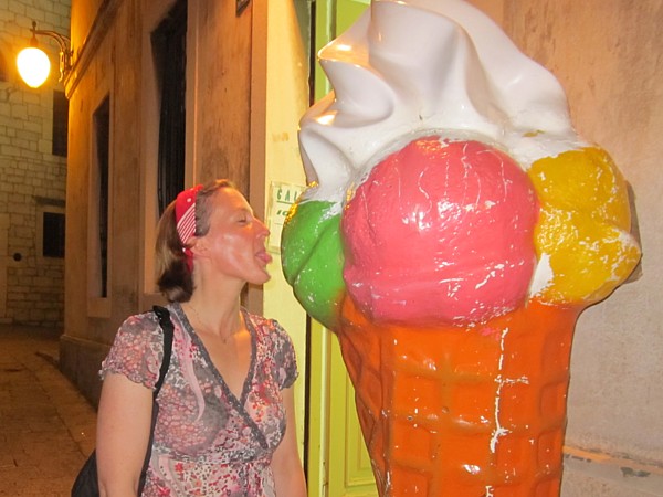 Vorher müssen Iris und ich allerdings noch einen Kroaten abwimmeln, der - mit Topffrisur und piepsiger Stimme - urplötzlich auf uns zugehüpft (im wahrsten Sinne des Wortes!) kommt. Seinem "You need a room?" können wir gerade so entgehen, indem wir uns in die direkt hinter ihm befindliche Touristeninformation flüchten.