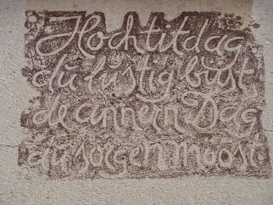 Hochtitdag du lustig büst, de annern Dag du sorgen mööst. Anschrift am Standesamt in Malchow. |