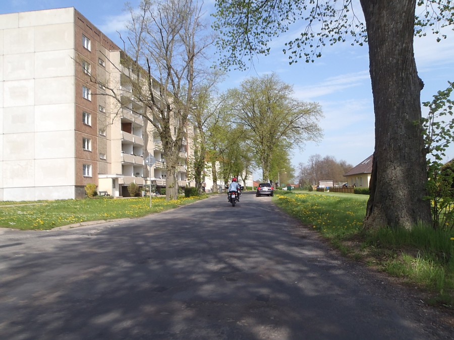 Gibt es noch zu Hauf: Plattenbauten im Osten. Ortseinfahrt von Stavenhagen. |