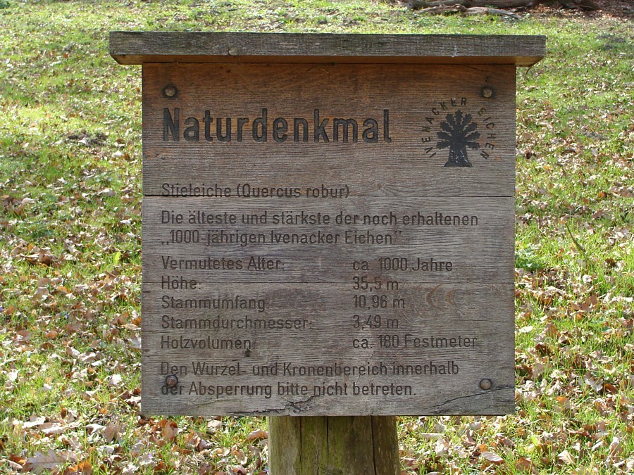 ... das im Hintergrund sind aber keine ... Hinweisschild an den Ivenacker Eichen. |