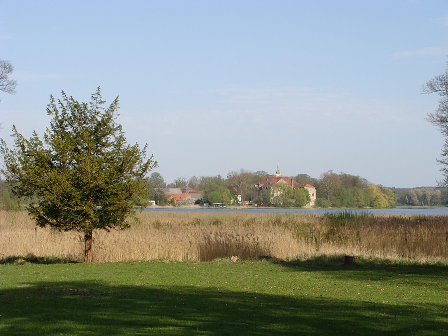 Blick auf die Klosterkirche auf dem Festland von Malchow. |