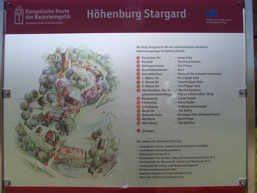 Infotafel an der Burg Stargard, Deutschlands nördlichste erhaltene Höhenburg. |