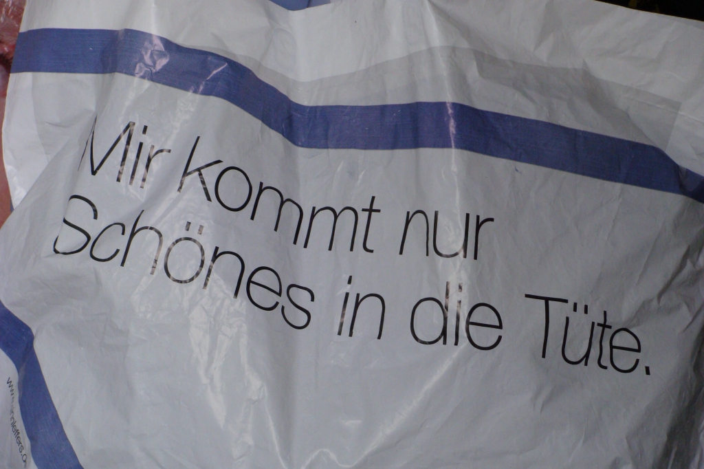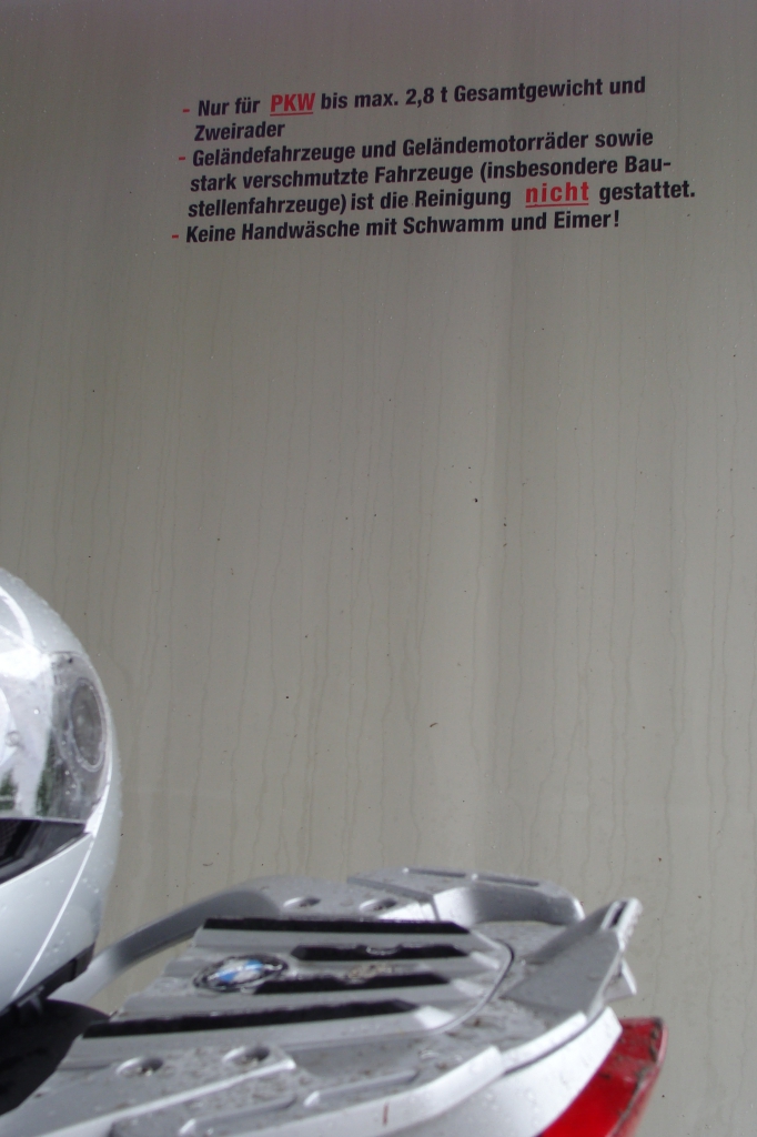 |   | Waschen verboten. Aber wir haben auch so genug (vom) Wasser. |