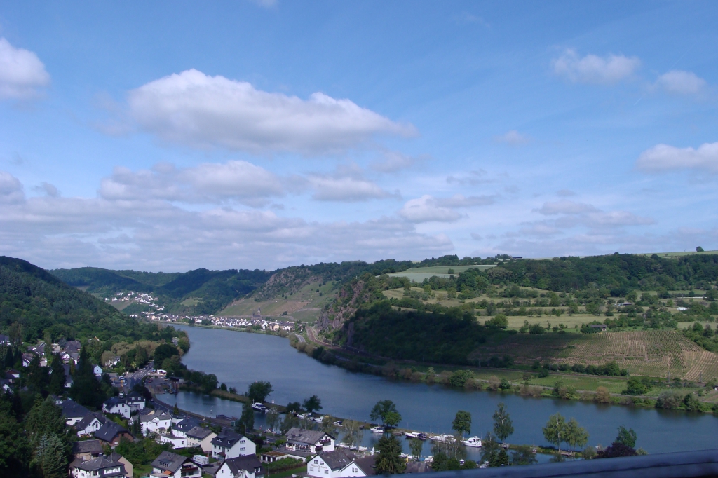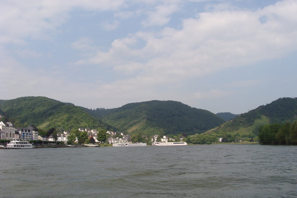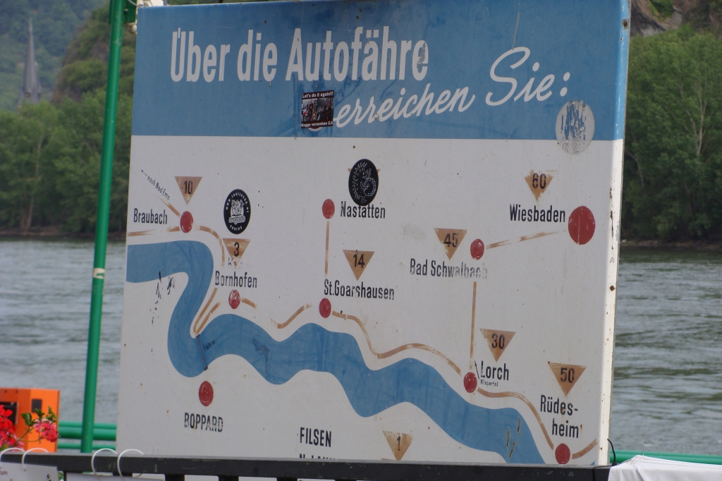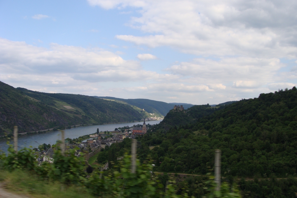 |   | Fahren mit Aussicht. Blick auf Bacharach (?) am Rhein. |