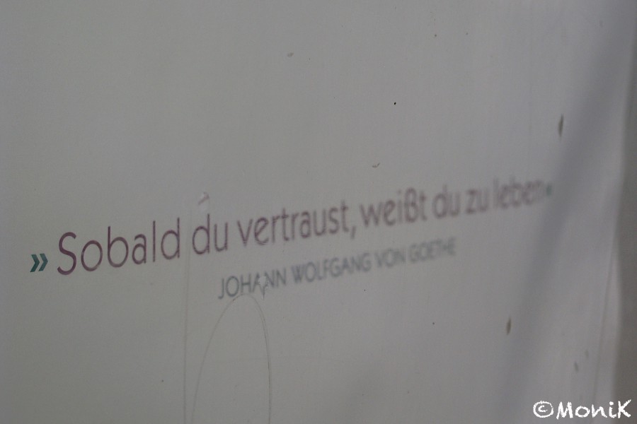 "Sobald Du vertraust, beginnst Du zu leben" - dieses im Informationskasten an der Klostermauer hängende Zitat von J. W. von Goethe kann ich nur bestätigen. Der Beginn liegt ganz nah, steckt in dir drin. Ohne Selbstvertrauen geht nämlich gar nichts.