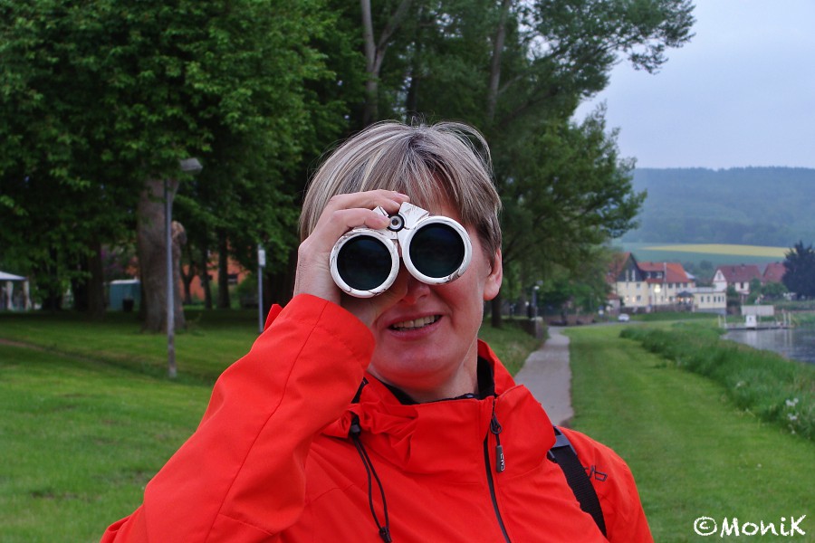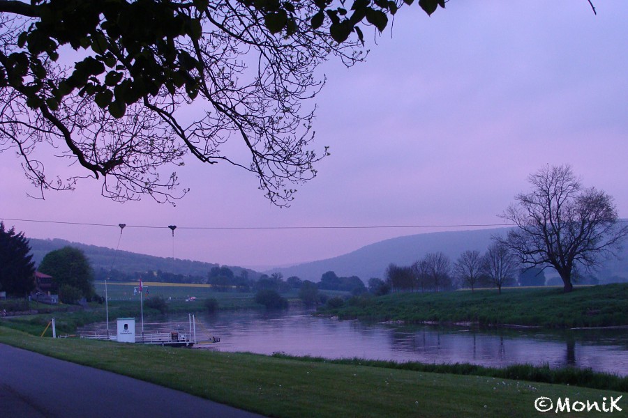 Hier befinden sich beeindruckend viele alte und sehr gepflegte Fachwerkhäuser. Ein weiterer Blickfang ist die im klassizistischen Stil und aus Feldsteinen errichtete Martinskirche aus der ersten Hälfte des 19. Jh. Wir beenden unsere Runde mit einem Bummel entlang der Weser und kehren in der zunehmenden Dämmerung auf den Campingplatz zurück. Ich spüre die Anstrengung der ungewohnten Bewegung nun deutlich. Um 21h30 ist Endegelände in den Zelten. Ich stecke mir die Ohrstöpsel rein - der Lerneffekt vom letzten Zelten über nicht-schallisolierte Zeltwände - ist noch wirksam. Das "Gute Nacht" meiner Mitfahrerinnen bekomme ich schon nicht mehr mit; ich bin ratzfatz eingeschlafen. |