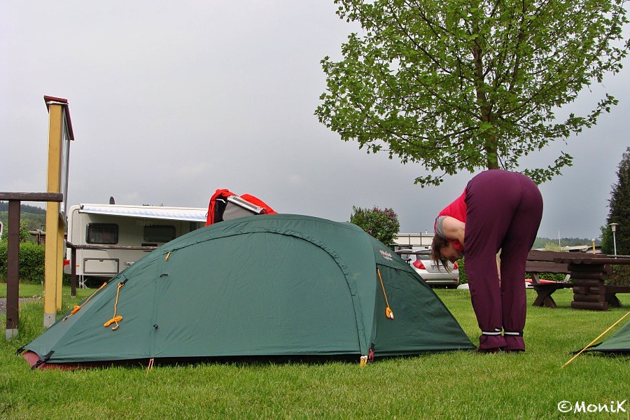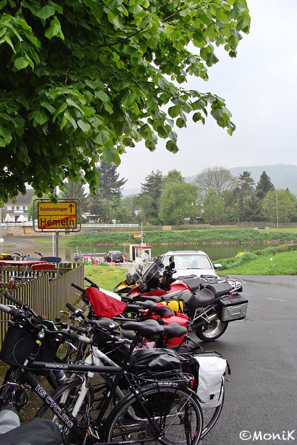 Noch keinen Meter gemeinsam gefahren, aber die Luft ist schon raus. Letzte Vorbereitungen in Hann. Münden, bevor es's endgültig losgeht. |