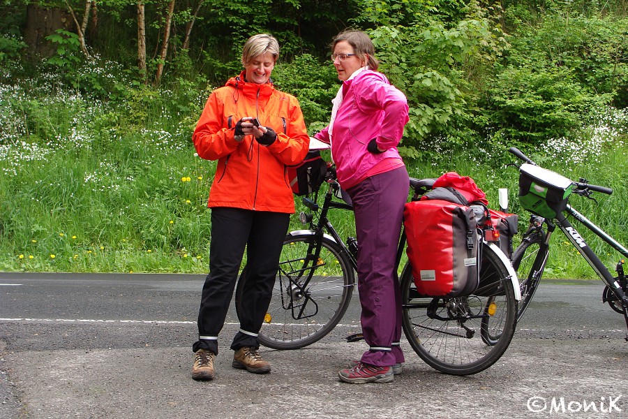 Eeeeendlich! Kerstin & Iris treffen - sichtlich gut gelaunt - in Hann. Münden ein. Jucheee! |