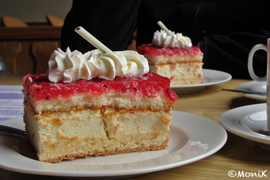 Rund ums Bootshaus ist es sehr ruhig. Als wir an der Eingangstür stehen, wissen wir auch warum: Mittagsruhe von 12h00-14h30. Es ist gerade mal 12h50. Na prima, nicht ganz perfektes Timing. Was tun? Wir sind uns sofort einig: wir warten! Stören wollen wir nicht, und so setzen wir uns zuerst auf die zugängliche Terrasse im 1. Stock, nehmen aber wenig später einen windgeschützten Platz direkt vor der Eingangstür ein Stockwerk tiefer ein. Da sitzen wir nun zu dritt wie Waldorf und Statler aus der Muppet Show, nur dass kaum Publikum zum Lästern vorbeikommt. Plötzlich geht die Türe auf, und Scholastika Otto, die Inhaberin, kommt heraus, begrüßt uns im Vorbeigehen wie normale Besucher und bleibt dann verdutzt stehen „Was macht Ihr denn hier???“ Das „Hallo“ ist groß, die Freude über das Wiedersehen ebenfalls. Und - Ehre, wem Ehre gebührt - wenig später sitzen wir oben in der Gaststube und genießen Kaffee und ein Stück von Omas selbst gebackener Torte. Hmmmm, lecker!