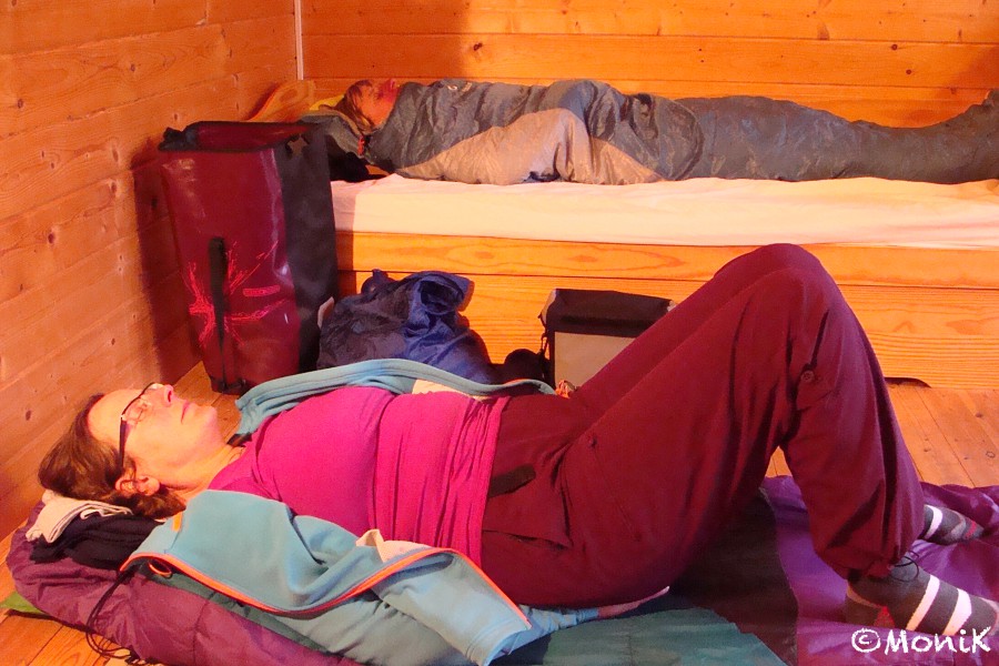 Individuelles Temperaturempfinden. Zugegeben, in der Hütte ist es nun nicht wesentlich wärmer als im Zelt, aber eindeutig komfortabler. Auf dem Campingplatz in Höxter. Sleep well in your Bettgestell. |