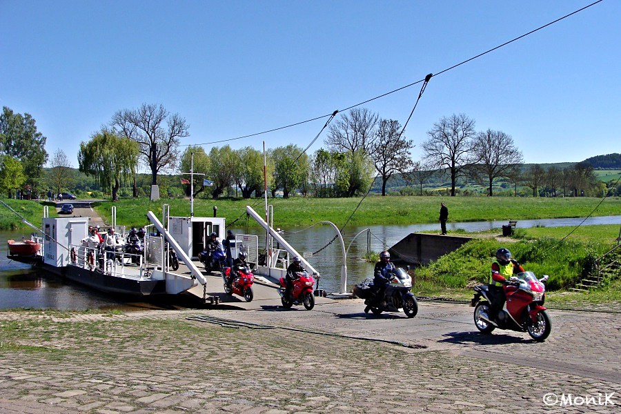 Eins, zwei, drei ... viele! Weserfähre in Polle. |