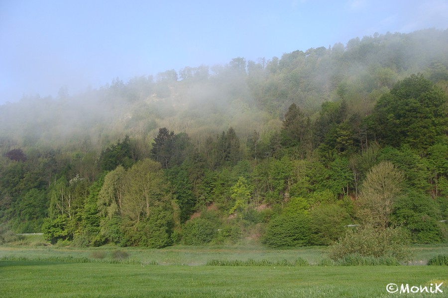 Die Begeisterung für diesen Campingplatz dagegen hält sich weiterhin in Grenzen. Wir hatten für um 8h30 Frühstück bestellt, doch wir finden nur einen leeren Tisch vor. Nach einigem Warten bekommen wir immerhin einen Pott Kaffee vorgesetzt. Später folgen dann die Brötchen - bereits belegt und eine zentimeterdicke Schicht Butter kaschierend. Hmmmmja. Fällt in die Rubrik „Abhaken“. Ebenso wie das Zusammenpacken der noch feuchten Zelte, die - natürlich - in der kurzen Zeit des Frühstücks nicht getrocknet sind. Um 10h15 sitzen wir im Sattel unserer 1-PS-Gäule. Dies scheint unsere Standard-Abfahrtszeit zu sein. Einen Lacher gibt es dann genau zu diesem Stichwort: Abfahrtszeit. Wir hatten am Vorabend noch über die Zugzeiten gewitzelt, da Kerstin von einer anderen Ankunftszeit in Hamburg sprach als ich. Nun stellt Iris beim Blick auf ihr Ticket fest, dass ihr Zug ab Hameln eine Stunde später als Kerstins und men Zug gebucht ist!