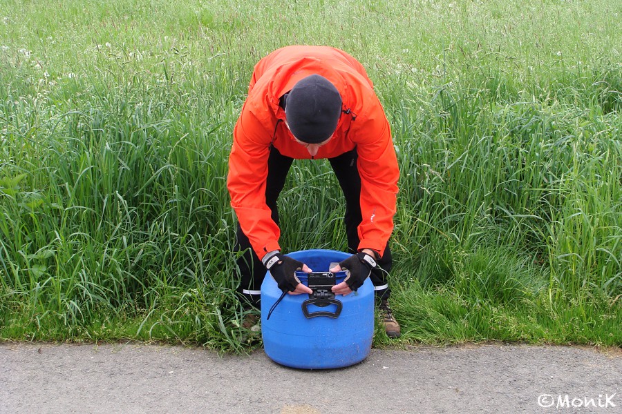 Wenig später erfolgt der erste steile Anstieg des Tages. Ich hoffe, dass es auch der letzte sein wird. Meine Muskeln sind noch nicht wach, und so ist bei mir erst einmal Schieben angesagt. Das geht ja schon gut los. Bei Daspe legen wir einen kurzen Fotostopp ein. Kerstin und ich verfolgen amüsiert Iris’ Bemühungen, ihren kleinen Fotoapparat auf dem Rand eines Abfalleimers zu positionieren, um mit Hilfe des Selbstauslösers ein Gruppenfoto zu machen. Erst später fällt mir ein und auf, dass am gegenüberliegenden Ufer Hehlen mit seinem gleichnamigen Schloss liegt. Erst kurz vor unserer Tour wurde im Fernsehen eine Reportage über das im 16. Jh. erbaute Wasserschloss gezeigt, das zwar im Privatbesitz und nicht zu besichtigten ist, in seinen ehemaligen Stallungen aber ein sehr nettes Café mitsamt Kaffeerösterei - „Die Kaffeewirtschaft“ - beherbergt. Schade, es stand eigentlich auf dem „Wanna see“-Zettel, letztendlich waren wir aber eh außerhalb der Öffnungszeiten dort unterwegs.