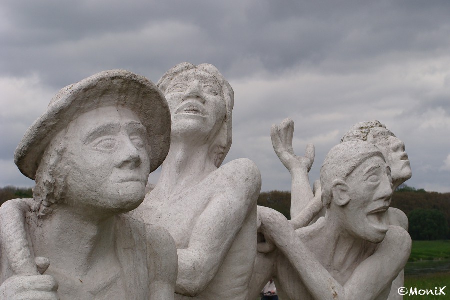 Weiter geht’s durch das nun eher breite Wesertal bis Hajen. Hier zieht eine überlebensgroße Skulptur, bestehend aus vier so genannten Treidelschiffern und einem Kater, die Aufmerksamkeit auf sich. Das wollen wir uns natürlich näher anschauen und lesen schmunzelnd die Sage, die hinter dem „Katten“ Hajen steckt: