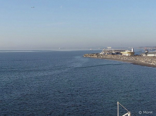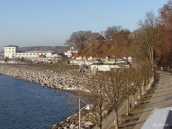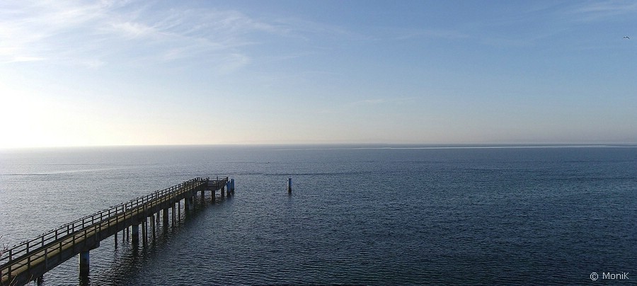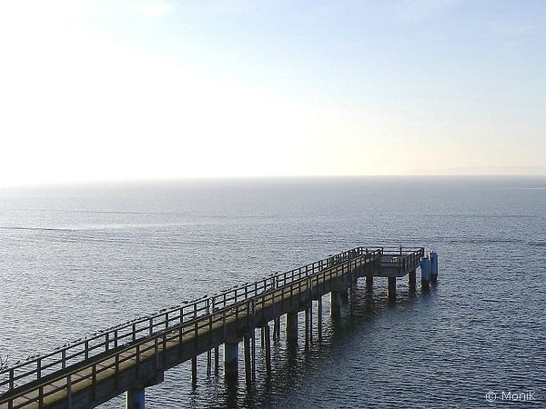 Nach einem abenteuerlichen Treppenabgang gelangen wir unten an den Hafen. Aufatmen, denn ab hier verläuft der Fußmarsch, vom Kopfsteinpflaster abgesehen, ebenerdig. Herzlich willkommen, Ostsee! Weniger willkommen fühlen wir uns etwas später in der Pension. Ein Dreibett-Zimmer ist gebucht, aber eindeutig nur ein Zweibett-Zimmer - und zwar auch nur für zwei Personen - vorbereitet. Wahnsinnsaussicht vom Zimmerfenster aus hin oder her: freundlich, aber deutlich tun wir unserem Unmut kund und ziehen zur Suche nach einem Café los. Dummerweise schließt ein sehr nett aussehendes Objekt der Begierde vor unserer Nase, so dass wir wieder in unserer Pension landen, die ebenfalls Kaffee und "Kuchen aus eigener Konditorei" anbietet. Letzteren verkneifen wir uns allerdings aufgrund der fortgeschrittenen Uhrzeit zugunsten des Abendessens.  Ein kurzer Spaziergang treibt uns noch in Richtung Mole, die mit einer Länge von 1.450m immerhin die längste Außenmole Europas ist. Es ist eisig kalt und der Hunger tut sein Übriges dazu, dass wir die Mole nicht auf ihre komplette Länge hin untersuchen, sondern auf halber Strecke umdrehen und uns lieber dem Abendessen widmen. Leider zieht sich die Unzufriedenheit hinsichtlich der Pensionswahl für mich wie ein roter Faden durch den Tag. Der gewählte "Rügener Fischtopf" entspricht nicht so ganz meinen kulinarischen Erwartungen, und ich schiele leicht neidisch auf Kerstins saftig-dickes Kutterdorschfilet in Kartoffelkruste, während ich meinen Tiegel auslöffle. Immerhin: er sättigt. Unmittelbar nach dem Abendessen setzt die Verdauungsmüdigkeit ein (wovon sollten wir sonst so müde sein???). Wie gewohnt sind wir mal wieder sehr spontan in Sachen Programmplanung. Ich unterbreite einen Vorschlag, der mit den Zielen Kap Arkona und Königsstuhl eine Tour in Richtung Norden der Insel vorsieht. Spannend wird es sicherlich aufgrund knapper Umsteigezeiten, wie der sehr übersichtliche Busfahrplan erahnen lässt. Wir lassen uns überraschen und liegen alsbald in den Kojen.         |