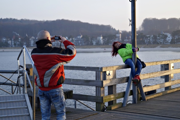 Im Braugasthaus Fritz bleibe ich schließlich hängen, einer urig-rustikal-gemütlich eingerichteten Brasserie, die draußen mit frischem Hering und Matjes wirbt. Oh lecker, Matjes mit Bratkartoffeln, und dazu ein schönes, frischgezapftes Zwickel-Bier. Vorsätze? Fastenzeit? Kann doch auch noch in drei Tagen beginnen, oder? Ich genieße feste wie flüssige Nahrung und lausche amüsiert den Gesprächen links und rechts an den Tischen. Gesättigt und zufrieden beschließe ich später, nicht den direkten Weg zur Unterkunft, sondern noch einmal in Richtung Seebrücke und Kurhaus zu gehen, um noch ein wenig mit der Kamera, meiner noch recht unbefleckten Errungenschaft, zu spielen, bevor ich über die Strandpromenade endgültig in Richtung JH schlendere.