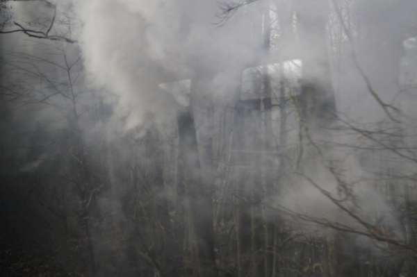 Was für ein Spektakel, die Lokführer haben ebenfalls ihre Freude daran und lassen kräftig Rauch in den Himmel steigen. Das hat während der Fahrt allerdings auch zur Folge, dass man von der Waldlandschaft nicht allzu viel sieht. Vor den Fenstern schießt dichter weißer Rauch vorbei. Schade eigentlich, dass man den Geruch nicht auch auf den Speicherchip bannen und mit den dazugehörigen Fotos verknüpfen kann. Die Nostalgie währt zunächst nur eine kurze Zeit - in sieben Minuten ist die Haltestelle "Jagdschloss" erreicht, von hier aus führt ein holprig gepflasterter Weg durch den Wald zum ehemaligen Sitz der Fürstenfamilie von Putbus. Das Jagdschloss Granitz ist noch vom vorjährigen Besuch bekannt, doch heute hat es für mich eine besondere Bedeutung: ich will es wissen! Will wissen, wie mein körperlicher Zustand ist und will den Turm und seine 154 Stufen besteigen.