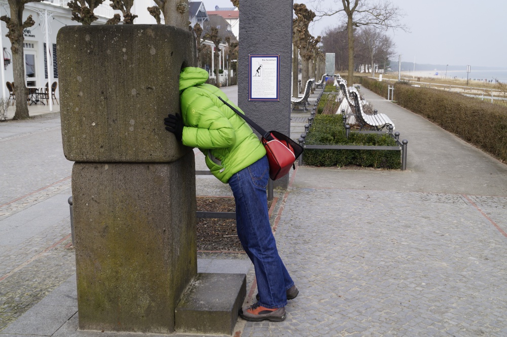 Versuch macht klug und nicht kopflos. Und tatsächlich, eine beeindruckende Akustik! Unbedingt mal ausprobieren, wenn sich die Gelegenheit auf der Strandpromenade von Binz, nahe Kurhaus, bietet! |