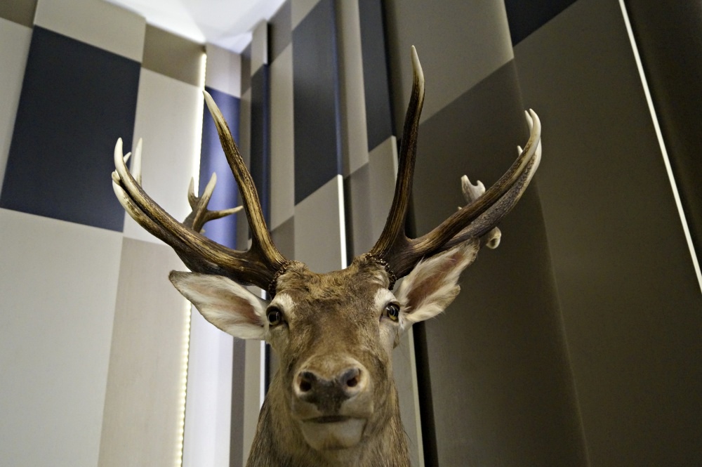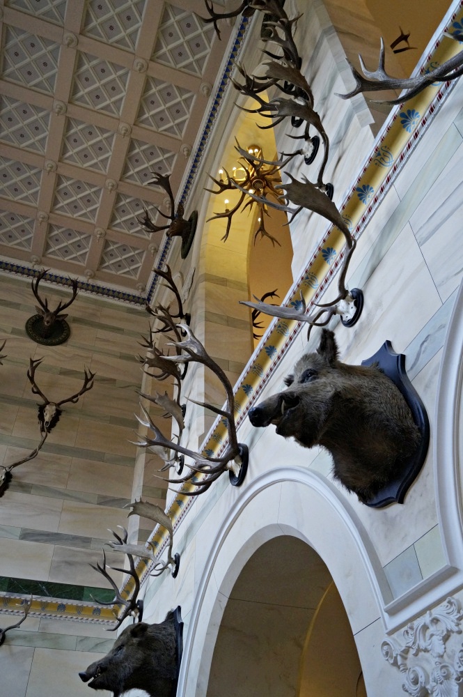 Spätestens in der Eingangshalle weiß man, dass man sich in einem Jagdschloss befindet.