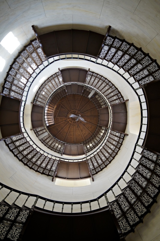 Nur für Schwindelfreie. Die berühmte freitragende Wendeltreppe im Turm des Jagdschlosses Granitz.