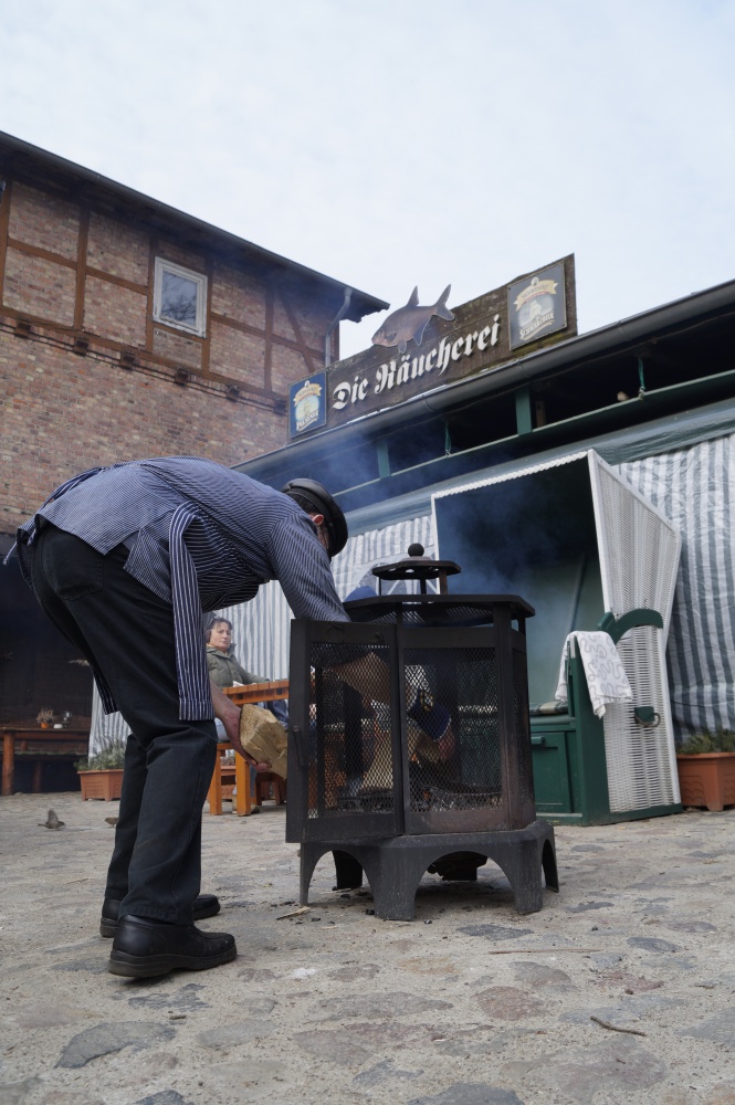 "Die Räucherei" am Bahnhof von Göhren - macht ihrem Namen gerade alle Ehre.