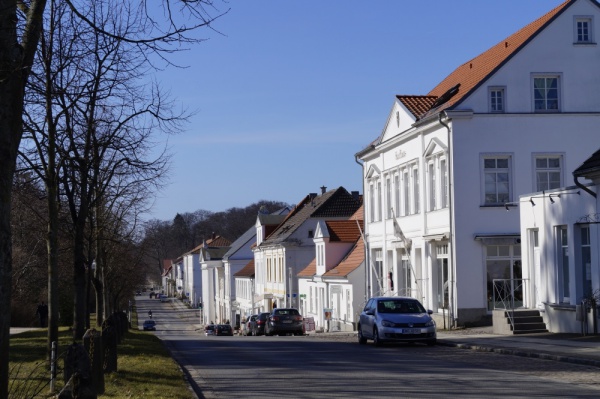 Warum, erkenne ich später vor Ort sofort: groß ist die Anzahl strahlend weißer Häuser und Gebäude im klassizistischen Baustil, die der Fürst von Putbus, Wilhelm Malte I., zu Beginn des 19. Jh. anlegen ließ. Als ich im Zug sitze, sehe ich aber erst einmal nicht viel. Dichte Rauchschwaden ziehen am Fenster vorbei, der Heizer heizt der Lok ordentlich ein. Sieht man doch einmal was, so ist es eine sanft geschwungene Landschaft, Äcker und Wiesen, kleine Dörfer. Auch mal nur eine kleine Haltestelle der Bahn mitten in der Pampa oder aber ein von einem Pferd gezogener Bauernwagen. Hier scheint die Zeit stehen geblieben zu sein. Ein wenig Ostalgie kommt zunächst auch in Putbus auf, als ich vom Bahnhof in die Marienstraße einbiege, die zu Putbus' bekanntestem Platz, dem Circus, führt.