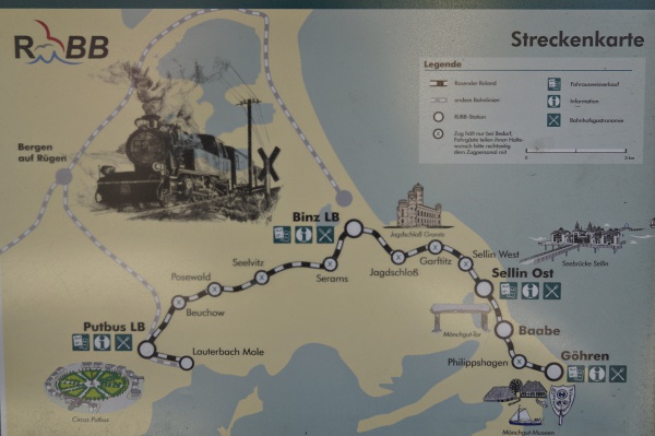 Im Park der Sinne, der mehr einem Skulpturenpark gleicht, spiele ich noch ein wenig mit der Kamera herum, doch ich bin pünktlich am Kleinbahnhof, um den Rasenden Roland um 10h40 zu erwischen. Ich entscheide mich für die Richtung Putbus - im Reiseführer wird die Residenzstadt auch als "Weiße Stadt" bezeichnet.