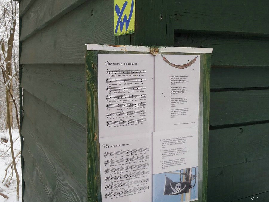 Stattdessen widmen wir uns den großzügig bemessenen Kuchenstücken auf dem Teller und fragen uns, um wie viel Uhr wir wohl in unserer Unterkunft des Tages, in der Weinschänke Rohdental eintreffen werden. Bis dahin sind es sicherlich noch 6km. Ein Anruf dort beruhigt uns allerdings: man warte auf uns und auch um ein Abendessen müssten wir uns keine Sorgen machen. Wären wir bloß schon da. Seufz. Immerhin, es bestehen Versuche, uns auf den letzten Kilometern ein wenig abzulenken: an diversen Rasthütten und Tafeln im Wald sind Lied- und Notentexte aus der "Kleinen Mundorgel" angeschlagen. Kerstin und ich stimmen mehrmals lauthals ein Lied an. Vermutlich nicht schön, aber laut. Irgendwann ist einem alles egal.