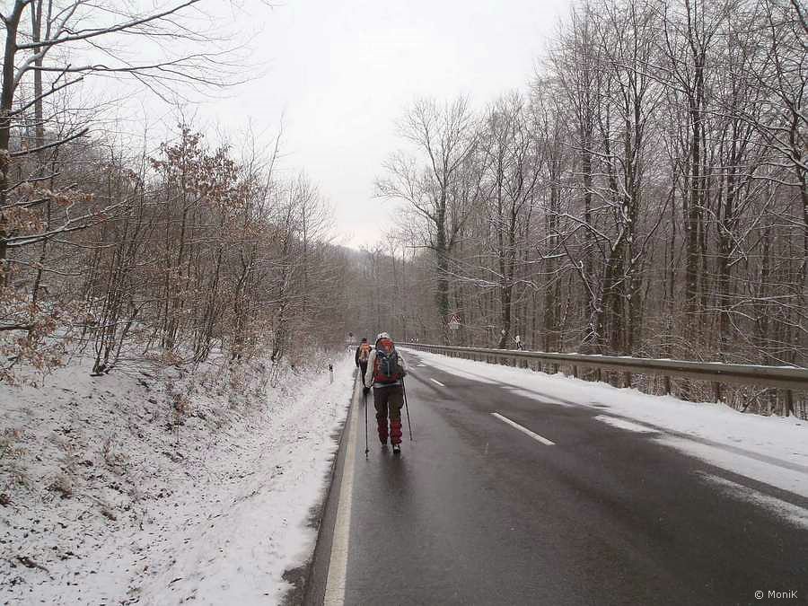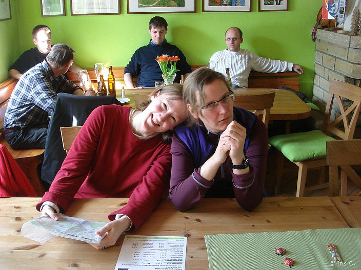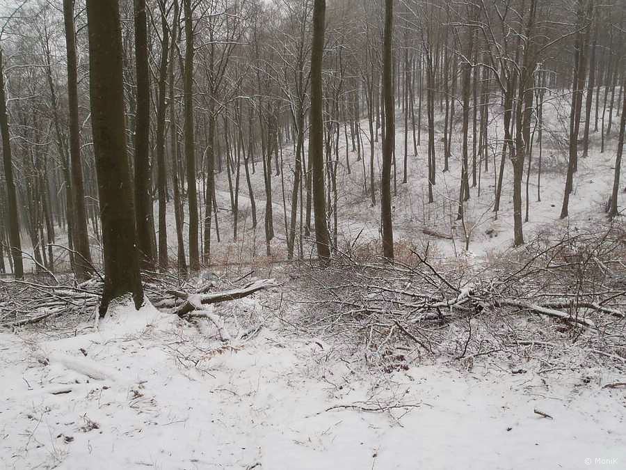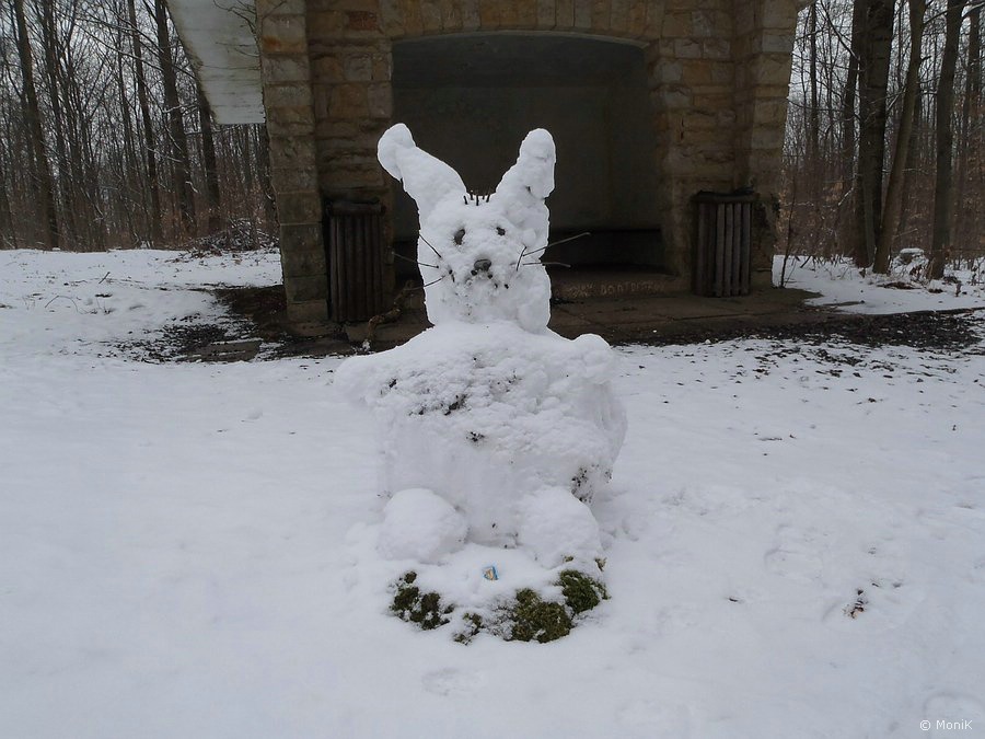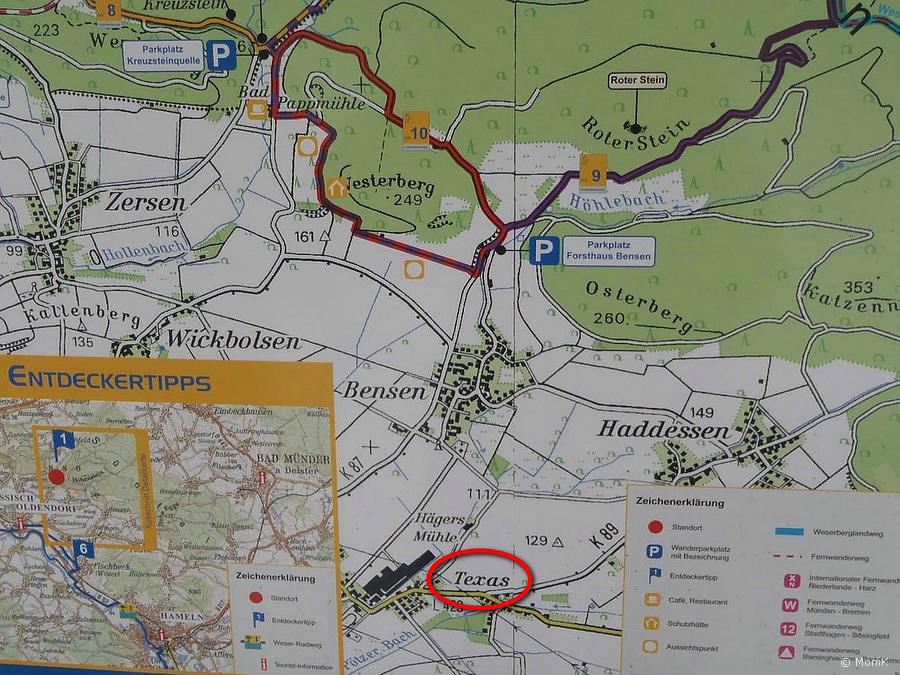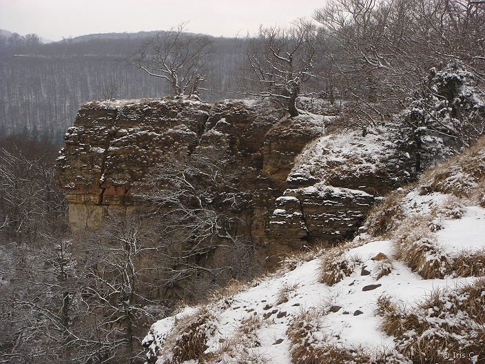 |  Frohe Ostern! Der Osterhase musste sich in diesem Jahr im Weserbergland mit dem Eierfärben bzw. -verstecken keine große Mühe geben. Der morgendliche Blick aus dem Fenster verrät: es schneit mal wieder. Und ausgerechnet heute, wo mit ca. 23km die längste Etappe auf dem Programm steht. Vorausgesetzt, wir verlaufen uns nicht wieder. Meine Beine fühlen sich ähnlich frisch (also gar nicht frisch) wie am Vortag an und ich frage mich, wie ich die Strecke bewältigen werde. Die Frage wird lauter, als wir nach einem guten Frühstück zur fast schon gewohnten Zeit um 9h20 von der Weinschänke Rohdental aufbrechen. Anstatt allerdings den Weg in Richtung 232m hohen Baumengartenberg zu wählen, wie es die Karte anzeigt, entscheiden wir uns für die Variante am unteren Dorfrand und Fuße des genannten Bergs entlang. Die führt uns zunächst über einen Acker, stößt dann aber gottseidank auf den eigentlichen Weserberglandweg, ohne dass wir irgendwelche Zäune und Hecken zu überwinden haben. Mein Blick fällt auf ein Tier mitten auf einem eingezäunten Feld. Ein Schaf? Ganz alleine? Kann nicht sein. Es steht in ca. 50m Entfernung mit dem Rücken zu uns, dreht dann seinen Kopf in unsere Richtung.  Ein Fuchs! Und ein ziemlich großer dazu! Er ist allerdings auf ein Kennenlernen nicht besonders scharf und sprintet - husch, husch - ab ins Gebüsch. Wir kommen gut voran, die Bedingungen sind ok, doch wenig später wird uns der Weg im Wald von einem rot-weißen Absperrband abgeschnitten. "Holzfällung. Betreten verboten. Lebensgefahr." Aha. Aber bestimmt nicht an einem Ostersonntag! Wir ignorieren das Band geflissentlich und fühlen uns später aufgrund der frisch gesägten und bereits sauber gestapelten Baumstämme bestätigt. Wenn doch immer alles so einfach wäre. Kurz darauf stehen wir mal wieder ein wenig orientierungslos an einer Straße. Laut Wanderkarte müssten wir zunächst ein Stück die Straße hinaufgehen, um wenig später rechts in den Wanderweg einzubiegen, der dann parallel zur Straße verlaufen sollte. Wir können von unserer Position aus nichts erkennen, zweifeln entsprechend an der Karte und unserem Orientierungssinn, laufen aber dennoch die Straße hoch, bis wir in einer Art Wendehammer für Waldfahrzeuge oder ähnlich schweres Gerät landen.          Grobe, tiefe Furchen statt ausgeschildertem Wanderweg. Zwar zweigt dort ein Waldweg in die anzustrebende Richtung ab, aber kein Schild ist zu sehen. Was tun? Wir beschließen, dem Waldweg ein Stück zu folgen, der zunächst noch parallel zur Straße verläuft, sich dann aber von ihr entfernt und irgendwie immer unbegehbarer wird. Ein gepflegter, offizieller Wanderweg schaut doch anders aus, oder? Wir verharren zwecks weiterer Überlegungen, als wir am Hang unter uns im Gestrüpp Bewegungen wahrnehmen. Ein kleines Rudel Wildschweine kommt die Böschung hinauf. Ca. 25m hinter uns schießt ein dicker Keiler über den Weg, die Hauer gut sichtbar. Uuuh, mit dem möchten wir widerum keine Bekanntschaft machen. Die anderen Tiere des Rudels bekommen wir nicht mehr zu Gesicht. Entweder verstecken sie sich noch im Gebüsch oder aber haben uns großräumig umlaufen. Wir laufen auch ... und zwar zurück in Richtung Straße, von der wir gekommen sind. Dieser Waldweg ist uns doch wenig suspekt.  Um ein paar Meter zu sparen, suchen wir uns eine Abkürzung den Abhang hinunter. Hier ist eindeutig kein Weg, so dass wir mitunter vor unüberwindbarem Gestrüpp stehen und den ein oder anderen querliegenden Baumstamm zu übersteigen haben. Aber alle Wege führen zum Ziel, und wir befinden uns irgendwann wieder auf der bereits bekannten Straße in Richtung Zersen, wo wir an der nächsten Kreuzung endlich zum ausgeschilderten Wanderweg zurückfinden. Auch hier stehen wir wieder vor der Wahl: nehmen wir die anstrengende Variante über die ca. 300m hohen Moosköpfe oder wandern wir unten durchs Tal zur Baxmannbaude? Da beide Wege als offizieller Weserberglandweg ausgeschildert sind, entscheiden wir uns guten Gewissens für die Talvariante. Die Baxmannbaude, eine kleine Waldschänke, die auch im Winter an Wochenenden bewirtschaftet wird, ist eine Anlaufstelle für Wanderer und Mountainbiker, doch wir haben kein Auge für sie übrig, sondern werfen unseren Blick auf den steilen Anstieg, der sich vor uns aufbaut. Steigung, soweit das Auge reicht. Und Treppen. Von 169m ü.NN. geht es hinauf auf den 340m hohen Hohenstein, auch bekannt als Hohensteiner Klippen, einem Hochplateau mit 50m steil abfallenden Felsklippen.          Wir werden für diese schweißtreibende Anstrengung belohnt, als just oben auf dem Plateau die Sonne durch eine Wolkenlücke bricht und wir einen beeindruckenden Weitblick über das Wesertal erhalten. Wir verschnaufen an diesem Felsenriff, an dem schon Germanen, Cherusker und Sachsen ihre Götter verehrten. Dass die Germanen hier einst ihrer Frühlingsgöttin Ostara huldigten, weiß ich da noch nicht. Hätte ich angesichts der Schneemassen auch nicht geglaubt. Und prompt als wir unsere Wanderung fortsetzen, fallen wieder ein paar Schneeflocken. Unglaublich. Immerhin: der Osterhase war auch schon da, wie uns ein Schneemodell vor einer nahegelegenen Rasthütte beweist. Das macht den Weg bis ans Ziel aber auch nicht kürzer: noch über 15km bis nach Hameln. Und die höchste Erhebung, der 440m hohe Süntel, liegt noch vor uns. Eine ganze Weile wandern wir über den Weserbergkamm, haben zwar kaum Höhenmeter zu überwinden, stapfen allerdings durch hohen Schnee, was das Wandern nicht weniger anstrengend macht.  Wir begegnen jedoch mehr Menschen als in den Tagen zuvor - Familienosterspaziergänge scheinen hier noch ein Brauch zu sein, der gepflegt wird. "Süntelturm 20min." - das Schild macht Hoffnung, denn mit der höchsten Erhebung der Hohen Egge auf 440m ü.NN. erreichen wir den höchsten Punkt unserer gesamten Tour und wähnen uns dem Zielort Hameln bereits sehr nah. Aber erst einmal muss der Süntelturm, ein um 1900 erbauter, schlanker, ste
