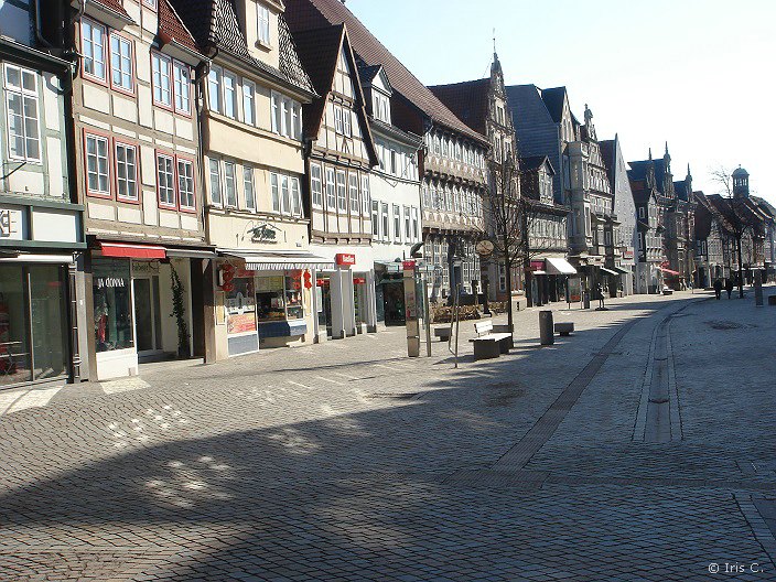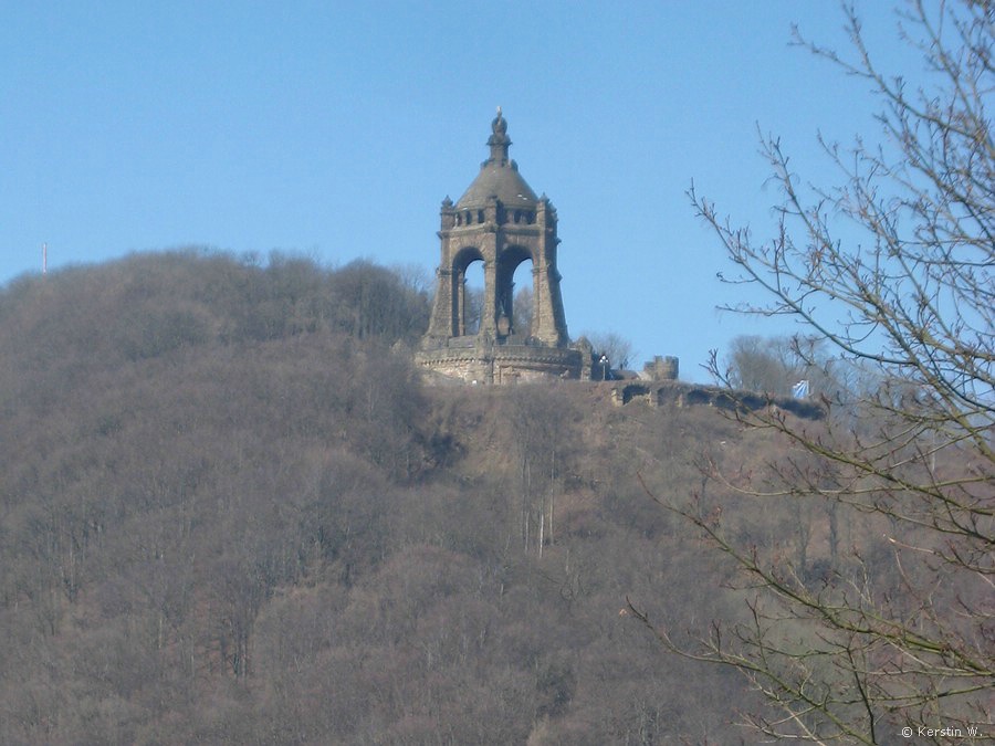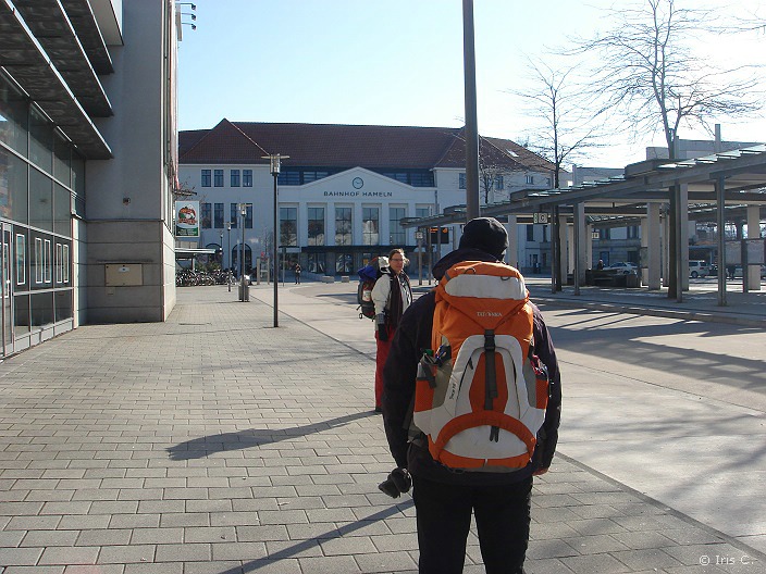 |  Von wegen Ausschlafen und spätes Frühstück. Da das Frühstück nur bis 8h45 angeboten wird, sitzen wir nicht wesentlich später als die Tage davor am Frühstückstisch. Immerhin können wir nun den Blick auf die Weser besser genießen: draußen herrscht strahlender Sonnenschein am wolkenlosen Himmel. Der erste Tag ohne Schneefall, und das am Tag der Abreise. Eigentlich unverschämt! Aber so lässt sich wenigstens eine kurze Stadtbesichtigung von Hameln noch angenehm gestalten, die allerdings dann doch deutlich kürzer ausfällt als geplant. An einem Ostermontagmorgen steppt in der durchaus hübschen, mit viel Fachwerk verzierten Altstadt nicht gerade der Bär, so dass wir den Weg zum Bahnhof ohne längere Besichtigungs- und Fotopausen zurücklegen und letztlich zwei Stunden früher als geplant den Zug nach Porta Westfalica nehmen. Es ist schon seltsam, nun bei schönstem Wetter im Zug zu sitzen und durch das Wesertal zu fahren, und dabei die ganze Zeit den Blick auf den Bergkamm zu haben, der uns in den letzten drei Tagen so viel Anstrengung bereitet hat. Der viele Schnee auf der Höhe ist kaum auszumachen.  Dafür sehen wir in Porta Westfalica nun das Kaiser-Wilhelm-Denkmal auf dem dem Bahnhof gegenüberliegenden Wittekindsberg klar und deutlich. Ein blauer, wolkenloser Himmel gibt doch einen besseren Hintergrund ab als dichtes Schneegestöber. Die Rucksäcke sind schnell ins Auto gepackt. Bald darauf befinden wir uns auf der Autobahn A2, kreuzen bei Rinteln die Fußgängerbrücke, über die wir drei Tage zuvor noch gelaufen sind und lassen dann das Weserbergland hinter uns. Gut 1 1/2 Stunden später setzt Iris Kerstin und mich in Soltau am Bahnhof ab, wo wir just in time den Anschlusszug nach Hamburg erwischen. Müde, aber zufrieden, so der Zustand. Gepaart mit einem Grinsen über die Gedanken "Wie verrückt sind wir eigentlich?" und mit der Überlegung, eine ähnliche Aktion durchaus zu wiederholen, bessere Bedingungen vorausgesetzt. Ach ja, das Weserbergland steht in diesem Jahr mindestens noch einmal auf dem Kalender. Im Juni und/oder Juli. Dann allerdings mit dem Motorrad!         |