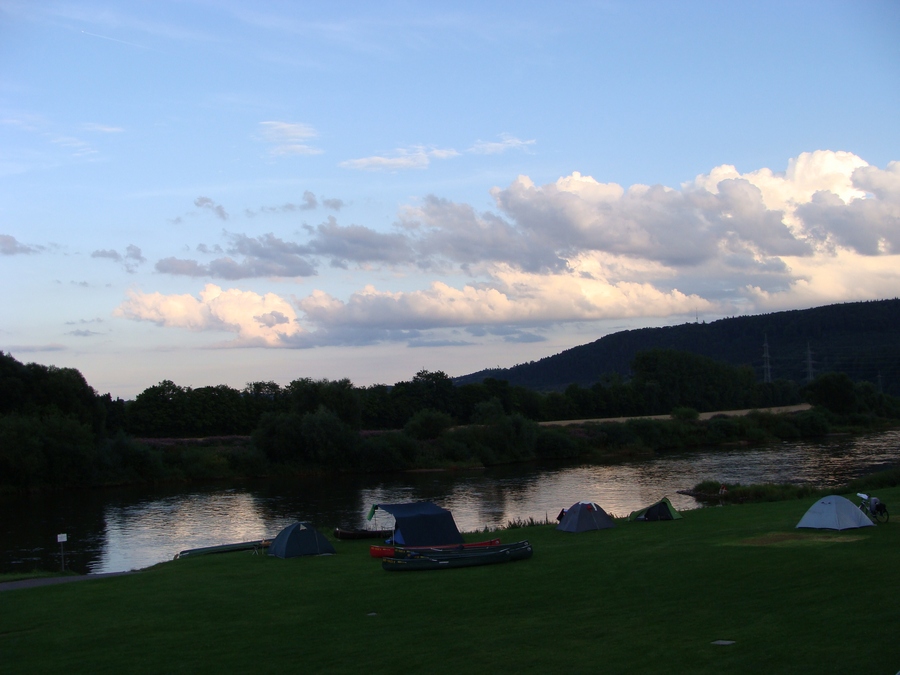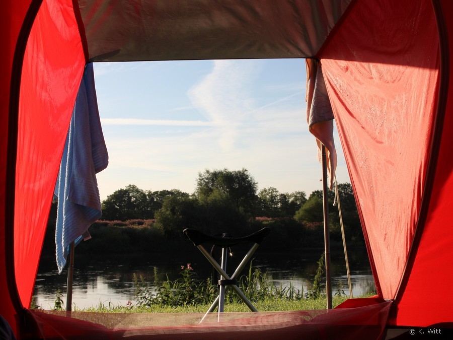 Das sind ja schöne Aussichten! Zeltplatz am Bootshaus Beverungen. |