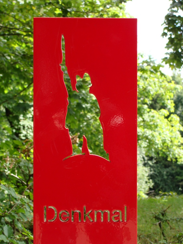 Hat was von Freiheitsstatue. Wegweiser zum Hermannsdenkmal. |