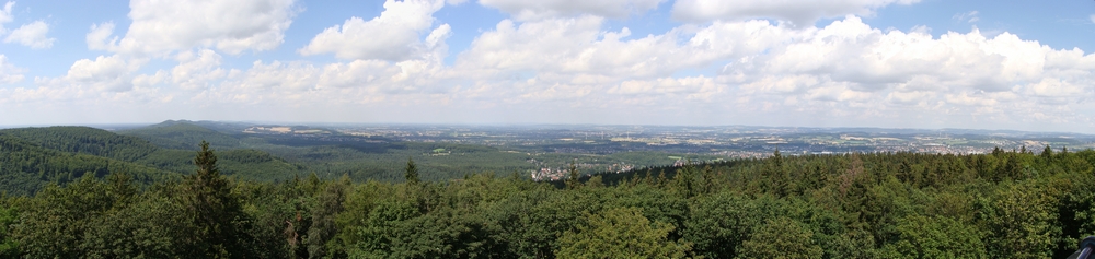 Landschaft, so weit das Auge reicht. Blick vom Hermannsdenkmal über den Teutoburger Wald, Detmold, Lemgo & mehr. |