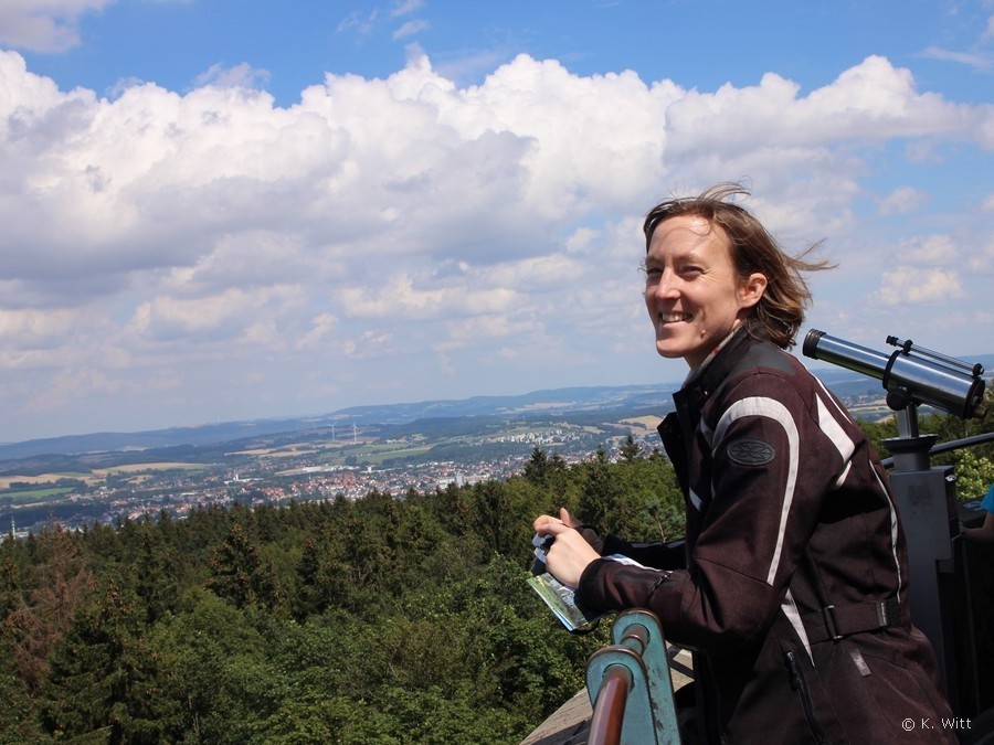 All trüben Gedanken vom Winde verweht. Auf dem Aussichtsumlauf des Hermannsdenkmals. |