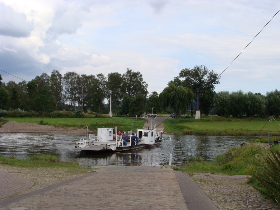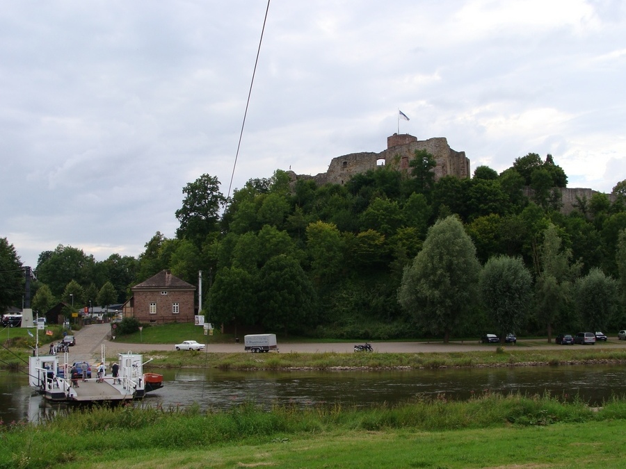 Gegendarstellung. Die Weserfähre bei Polle, mit Burg Polle als Deko. |