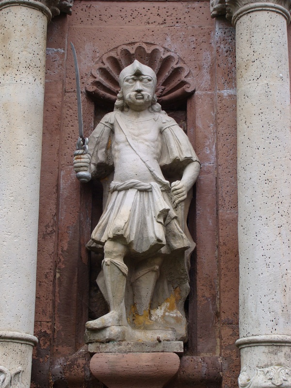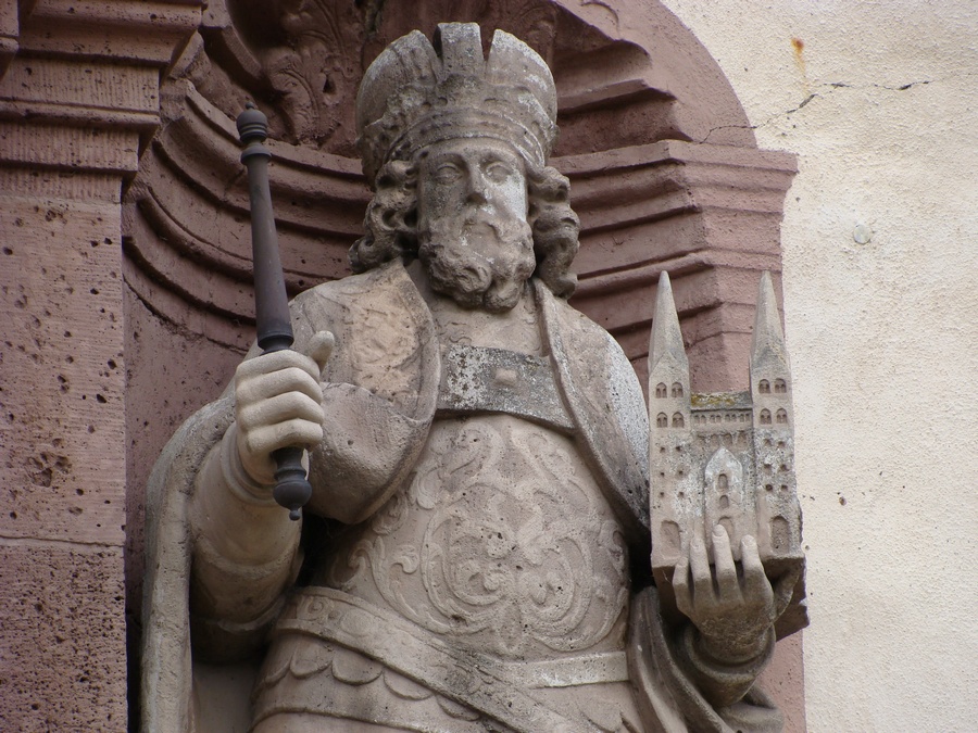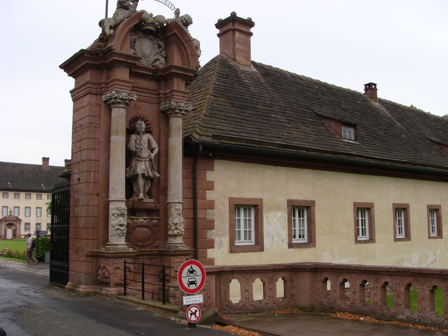 Torportal zum Innenhof von Schloss / Kloster Corvey. Statue von Ludwig dem Frommen, neben Karl dem Großen einer der Stifter von Kloster Corvey. |