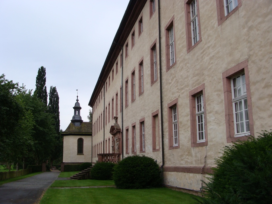 Rückseitige Fassade von Schloss / Kloster Corvey. Auf dem hinteren Friedhof ruht Hoffmann von Fallersleben, Dichter der deutschen Nationalhymne. |