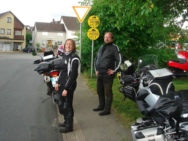 Die Autobahnen sind entsprechend voll, Baustellen tun das übrige zur langen Staubildung dazu, um den ersten Kilometern alles andere als das Prädikat "genussvoll" zu verleihen. Kerstin trudelt als letzte und wohl mit der schlechtesten Laune am Treffpunkt ein, aber die wandelt sich schnell in Gelächter. Wenn wir zusammen sind, gibt es keine schlechte Laune! Die lassen wir uns auch nicht von dem kräftigen Regenschauer verderben, der unsere Abfahrt ein wenig hinauszögert.