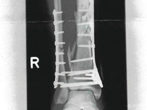 Ergebnis: Offene multiple Unterschenkelfraktur. Aha. Gespräch mit dem Oberarzt, der mich operieren wird. Blick auf die Röntgenbilder, aus denen ich die Schwere der Verletzung dennoch nicht richtig registriere. Ok, das Wadenbein ist einmal, das Schienbein mehrfach gebrochen, das Sprunggelenk hat auch einen Riss. Platten und Schrauben sollen es richten. Na, dann macht mal. Kann doch nicht so wild sein, war doch nur ein Umfaller!?