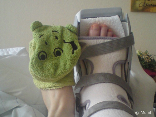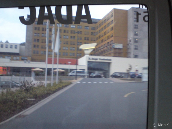 Die Narkoseärztin bleibt an meinem Kopf, setzt mir fette Kopfhörer auf, bald ertönen Robbie Williams und Gloria Estefan abwechselnd. Zeitweise auch mal ein Auszug aus einem Hörbuch. "Hilfe!" rufe ich, als plötzlich Volksmusik in meinen Gehörgängen dudelt. So stark wirkt die Narkose dann doch nicht! Gegen 14h45 werde ich aus dem OP geschoben. Sorry Jungs, dass ich Euch das Mittagessen versaut habe. Eine Schwester mit getönter Brille kommt mich von der Station abholen. Ich halte die Brille für eine Sonnenbrille und sage laut "Oh, wie schön, ich komme auf die Station wo die Sonne scheint!" Dass sie eine Augenkrankheit hat und diese Brille immer trägt, registriere ich erst später. Mit dem Aufzug geht's auf Station 8.3, Unfallchirurgie. Sie wird für die folgenden Wochen mein Zuhause. Und: alles nette Leute dort, ich fühle mich in der ganzen Zeit sehr wohl! Erst am 24.07., fast genau auf den Tag einen Monat nach dem Umfall, bringt mich der ASB im Auftrag des ADAC wieder ins 270km entfernte Hamburg. Endlich. Doch damit ist die Odyssee noch lange nicht zu Ende. Was folgt, wird mich allerdings weitaus mehr Geduld kosten als die 4 1/2 Wochen Krankenhausaufenthalt in der Ferne.