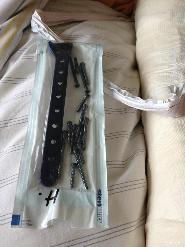 Mir gelingt es immer noch nicht so ganz, die Schwere der Verletzung zu fassen. Vermutlich, weil es von außen gar nicht so wild aussieht. Noch am gleichen Tag der Entlassung aus Höxter habe ich einen Termin bei einem Unfallchirurgen in Hamburg. Als Problem entpuppt sich eine Wundstelle kurz oberhalb des Knöchels - dort, wo der Bruch offen war - die nicht so recht verheilen mag. Das liegt daran, dass direkt auf dem Knochen die Metallplatte liegt und sich darüber schon von Natur aus kaum Gewebe befindet und sich jetzt auch nur ganz schlecht entwickeln kann. Dass dies nicht der einzige Grund ist, zeigt sich später. Nach 2 1/2 Wochen in ambulanter Behandlung schickt mich mein Arzt zur Untersuchung ins Krankenhaus. Die stagnierende Wundheilungsentwicklung und damit dauerhaft vorhandene Gefahr einer Infektion lässt ihm keine Ruhe, er möchte eine zweite Meinung einholen.